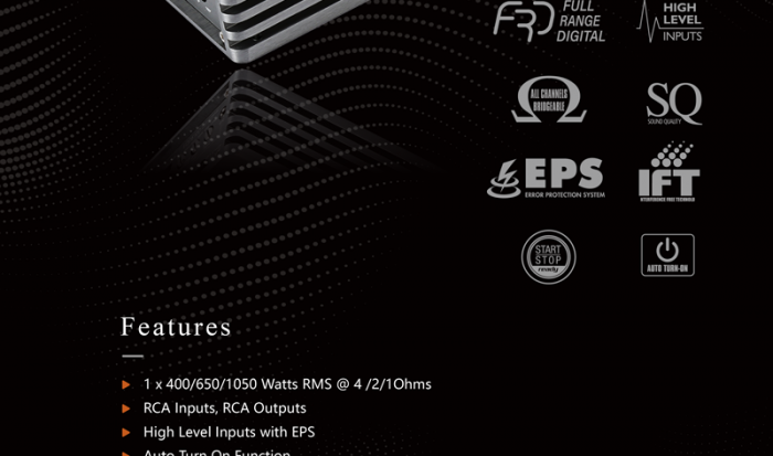 2 x 400 W RMS @ 4 Ohmi in punte