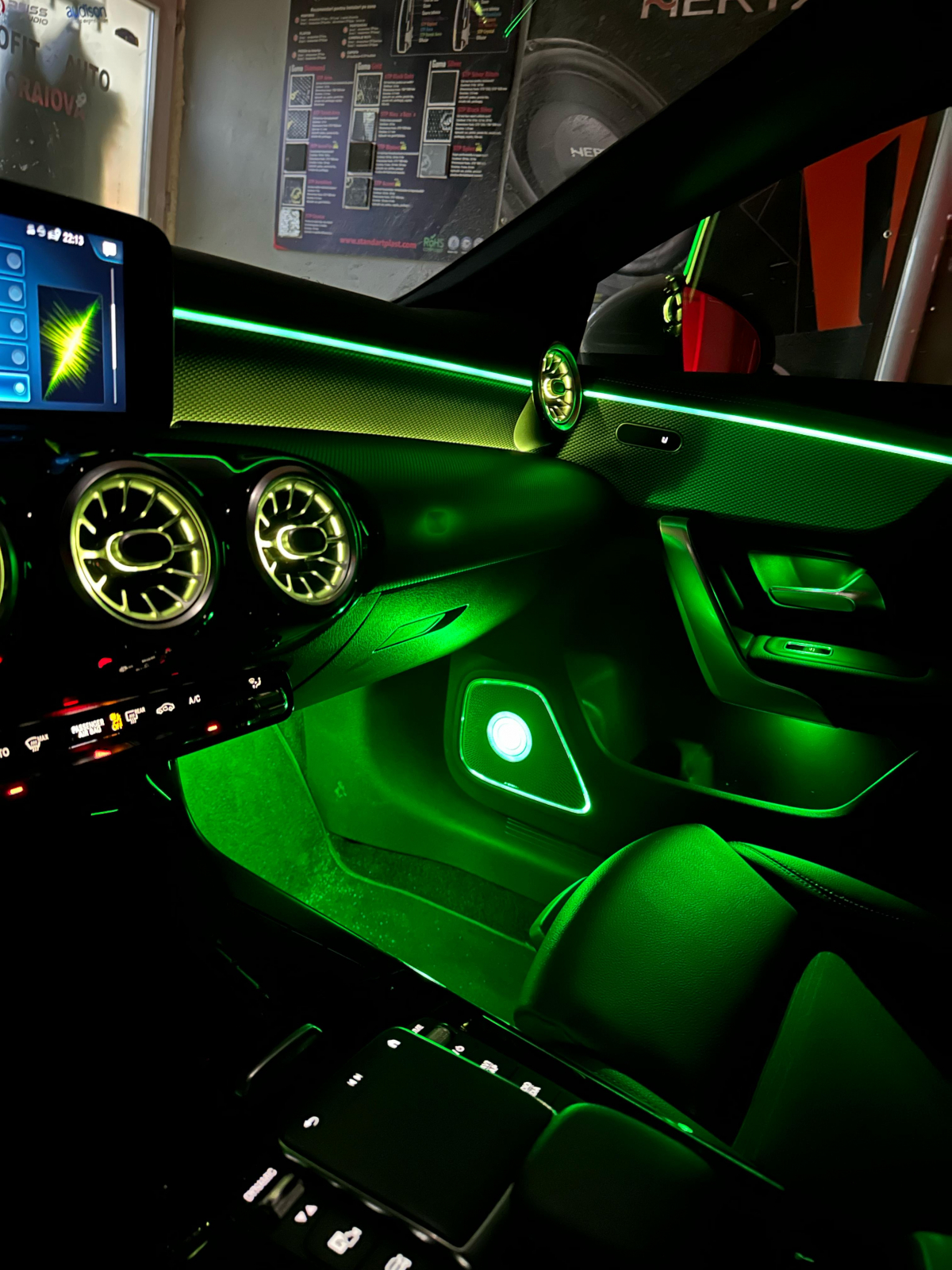 Masina trebuie sa aibe lumini ambientale cu 8 sau 64 culori de fabrica