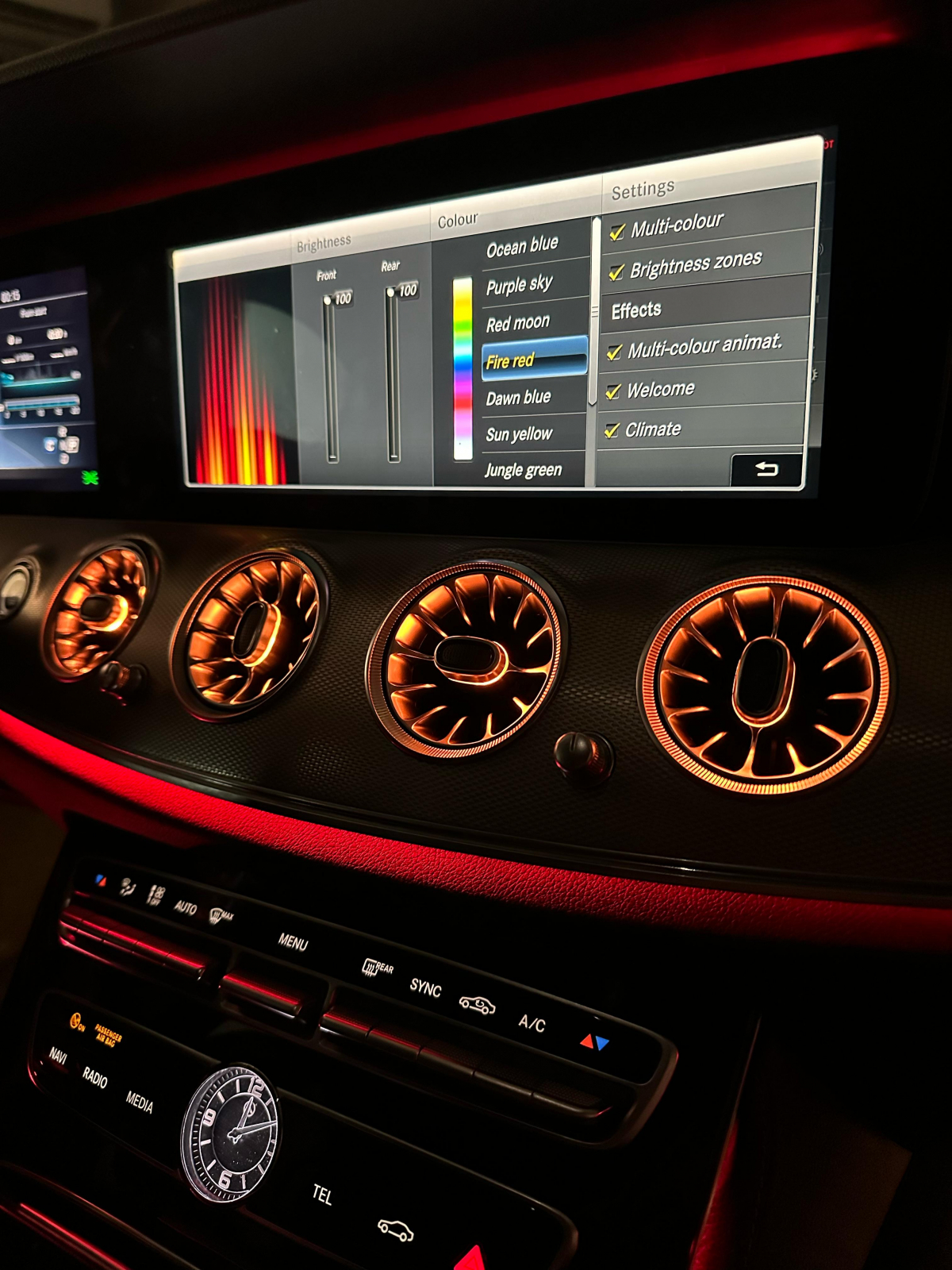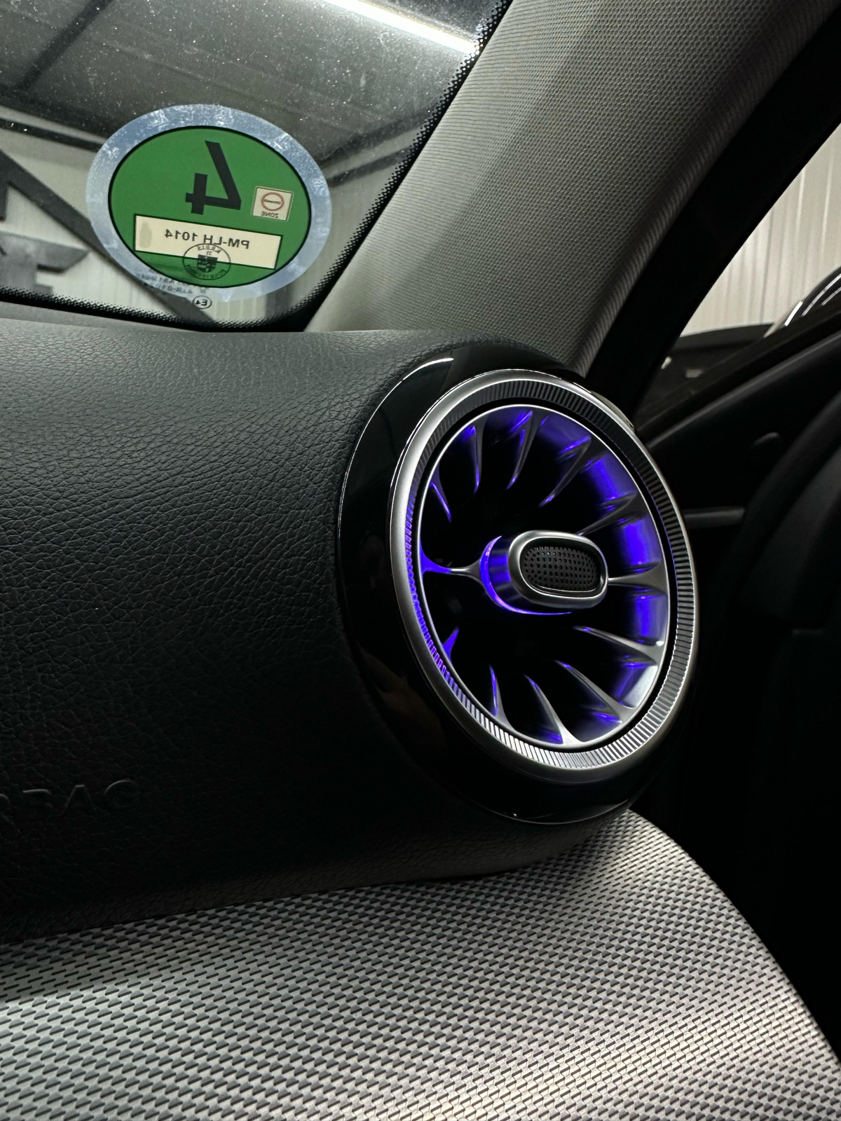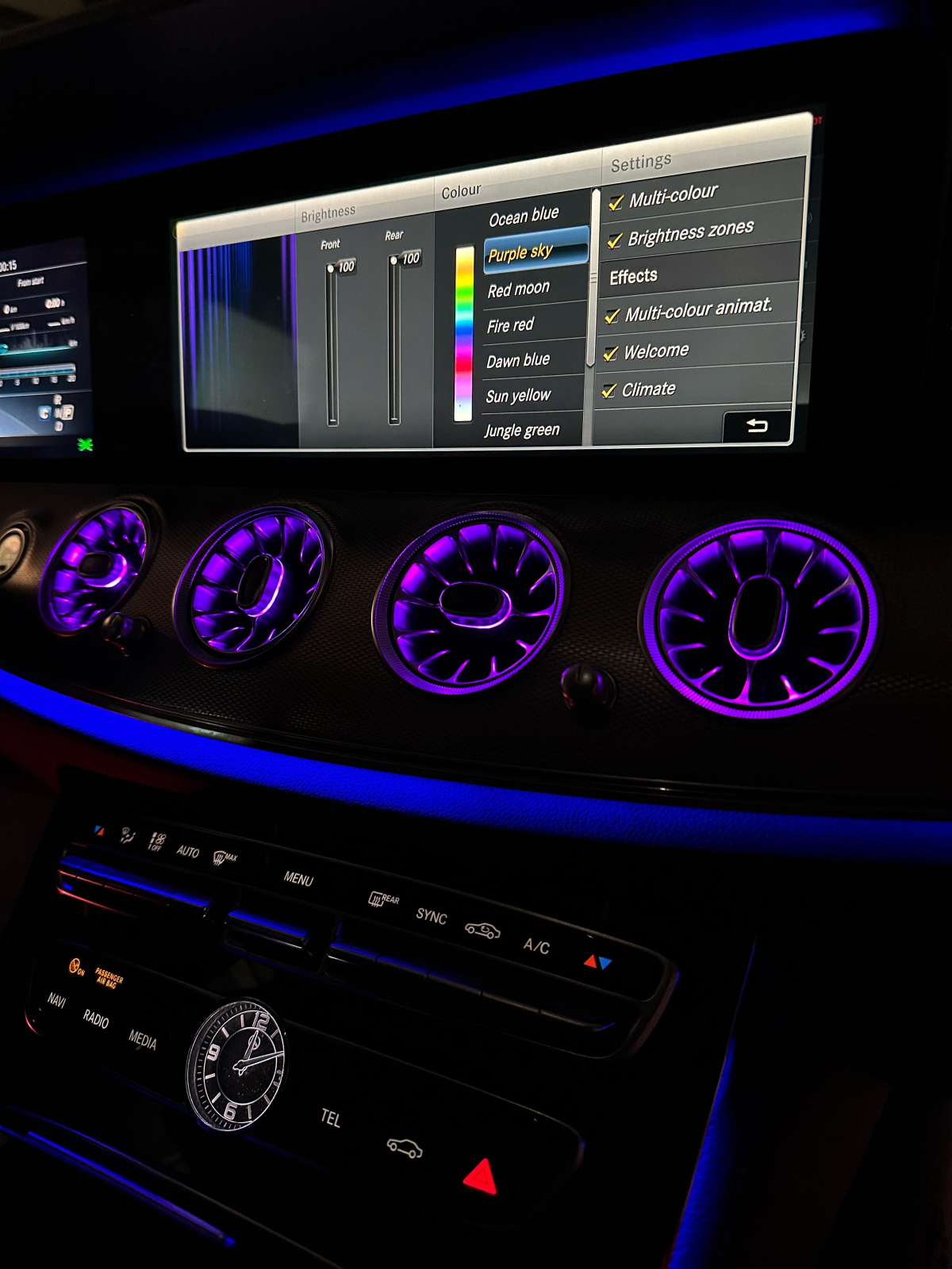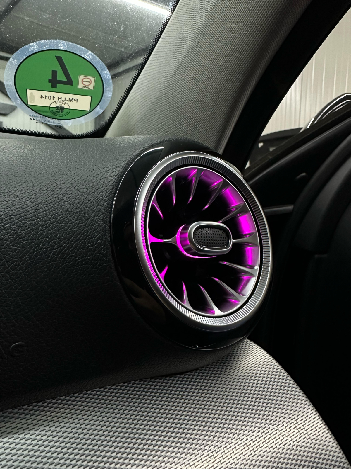 Masina trebuie sa aibe lumini ambientale cu 8 sau 64 culori de fabrica
