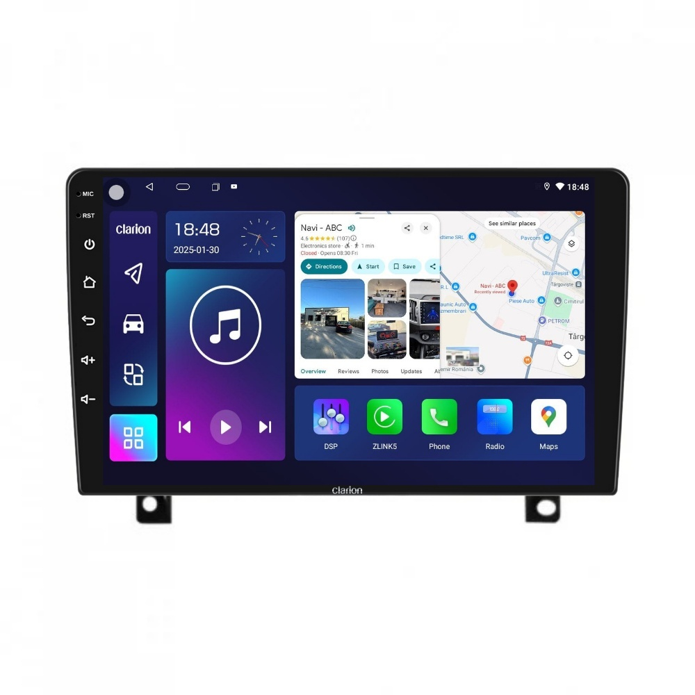 Navigație Auto Clarion cu Sistem Android Clarion , brand global renumit pentru inovațiile sale în tehnologia auto, cunoscut pentru furnizarea de soluții premium în domeniul navigației și infotainment-ului. Cu o experiență vastă de peste 85 de ani în industrie, Clarion este recunoscut pentru produsele sale de înaltă calitate si fiabilitate. Compania este un lider în dezvoltarea de echipamente auto care integrează tehnologia de ultimă oră. Unboxing Tableta – Detalii și Ce Conține Pachetul Mai jos găsești prezentarea tabletei Clarion, împreună cu toate accesoriile incluse în pachet. Instalare Plug & Play Se potrivește perfect în bord, fără a necesita modificări ale instalației electrice. Comenzile de pe volan rămân funcționale, iar sistemul se oprește automat la contact. Pachetul include rama si toate cablurile necesare montării pentru autoturismul dumneavoastra. Comenzi Volan Permite preluarea comenzilor originale de pe volan dar și adăugarea kit urilor de comenzi aftermarket în mașinile care nu au CarPlay & Android Auto Wirless Permite conectarea rapidă a telefonului pentru acces la aplicații esențiale precum navigație, muzică și apeluri, direct pe ecranul mașinii. Oferă o interfață optimizată, control vocal prin Siri sau Google Assistant și utilizare în siguranță fără a distrage atenția de la drum. Compatibilitate cu Camera Fata, Camera Trafic DVR & Camera de Marsarier Suportă cameră frontală pentru parcare, DVR pentru înregistrări video în trafic în timp real și cameră de marșarier pentru siguranță suplimentară la parcare. Procesor Puternic Octa Core Echipat cu un procesor performant, asigură o funcționare rapidă, multitasking fluid și o experiență fără întârzieri. Ecran IPS de Înaltă Calitate Dispune de un display IPS clar și luminos, cu rezoluție ridicată, oferind imagini vibrante și un răspuns tactil precis. Egalizator Auto & DSP Echipat cu egalizator auto și procesor de sunet DSP, permite ajustarea detaliată a sunetului pentru o experiență audio optimă în mașină. Conectivitate 4G LTE & Wi-Fi 2.4G HotSpot Asigură o conexiune stabilă, acoperire extinsă și eficiență optimizată pentru performanță constantă. Bluetooth, Hands-Free & AUX Permite conectarea telefonului prin Bluetooth pentru redare muzicală wireless și apeluri hands-free. Suportă și conexiune AUX pentru redare audio prin cablu. Navigație GPS Compatibil cu aplicații precum Waze, Google Maps și altele, oferă ghidare precisă în timp real și actualizări de trafic. Radio FM/AM cu RDS & Radio Online Suportă recepție FM/AM cu RDS pentru semnal stabil și sunet clar, afișând informații despre stațiile radio. Permite acces la posturi de radio Online. Ecran Împărțit si Multitasking Permite vizualizarea a două aplicații în paralel pe ecran, îmbunătățind multitasking-ul pentru a reda aplicațiile telefonului direct pe ecranul sistemului de navigație. Senzori de Parcare, Control Climă & Incalzire In Scaune Senzorii de parcare, incalzirea in scaune și controlul climatizării pot fi preluate direct pe navigație, dacă mașina suportă aceste funcții. Va multumim ca ati ales produsele