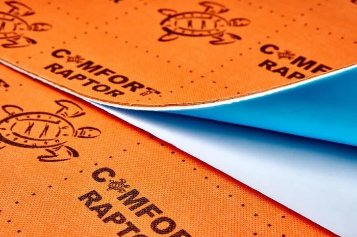 Comfort Mat RAPTOR (al doilea strat) este un material multistrat care combină materialul izolator fonic și termic și o membrană acustică de nouă generație. Stratul de montare este noua noastră dezvoltare unică a adeziv-etanșant AdiT. Materialul este format din 3 straturi membrană cu mastic acustic de înaltă densitate (2mm), material absorbant sunet (2mm) și etanșant adeziv.