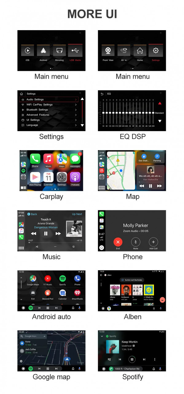 Modul Wireless Carplay si Android Auto Mercedes NTG 4.5 Acest Modul Wireless Carplay si Android Auto se ingrează perfect cu toate modelele MERCEDES echipate din fabrică cu sistem infotainment NTG 4.5 Meniul original al mașinii este preluat de interfață și va putea folosit în continuare. În pachet sunt incluse toate cablurile necesare montării plug & play a interfeţei. Mufa de alimentare este identică cu cea a maşinii, astfel că nu trebuie să modifici instalaţia electrică a mașinii și beneficiezi de aceeași calitate a sunetului. Poţi folosi o mulțime de aplicații disponibile pentru Android Auto sau Apple CarPlay, precum Waze, Google Maps, YouTube Music, Spotify, Skype, WhatsApp, Digi Online etc. Acest Modul Wireless Carplay si Android Auto preia comenzile de pe volanul mașinii precum și joystickul, acestea putând fi folosite în continuare pentru controlul navigației. Dacă mașina este dotată cu cameră de marșarier, aceasta se va afișa în continuare pe ecranul navigației. Daca nu, se poate monta cu ușurință o cameră de marșarier aftermarket. Dual zone: Poţi asculta muzică în timp ce foloseşti aplicaţia preferată de navigare, vocea aplicaţiei suprapunându-se, atunci când este cazul, peste muzică. Se integrează perfect cu orice model Mercedes dotat cu navigație originală NTG 4.5 Mercedes A Class W176 2013 2014 2015 Mercedes B Class W246 2013 2014 2015 Mercedes C Class W204 2011 2012 2013 2014 Mercedes CLA Class C117 W117 2013 2014 2015 Mercedes CLS Class W218 2013 2014 2015 Mercedes E Class sedan W212 2012 2013 2014 2015 Mercedes E Class coupe C207 A207 2012 2013 2014 2015 Mercedes G Class W463 2012 2013 2014 2015 Mercedes GLA Class X156 2013 2014 2015 Mercedes GLK Class 2013 2014 2015 Mercedes ML / GL 2012 2013 2014 2015 Mercedes SLK R172 2011 2012 2013 2014 2015 Mercedes S Class W221 2013 2014 Mercedes CL Class W216 C216 2013 2014 Mercedes GLS Class 2010 2011 2012 2013 2014 Va multumim ca ati ales produsele