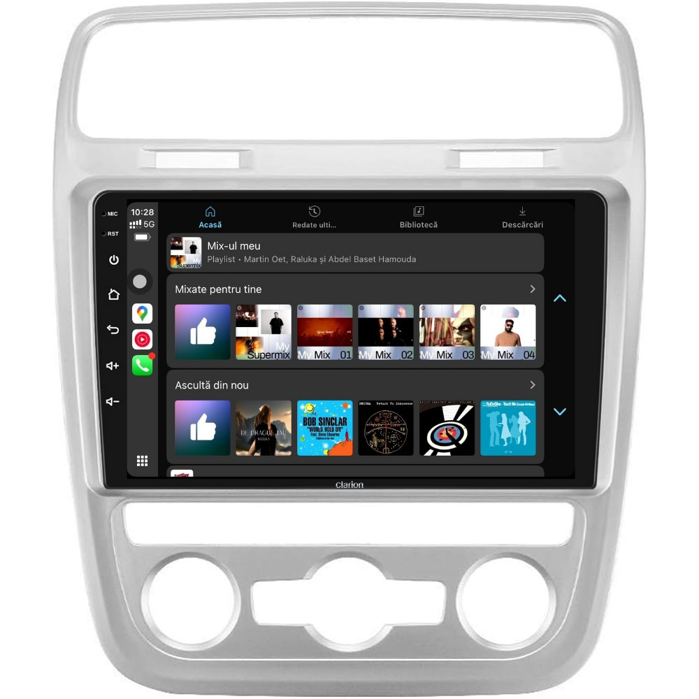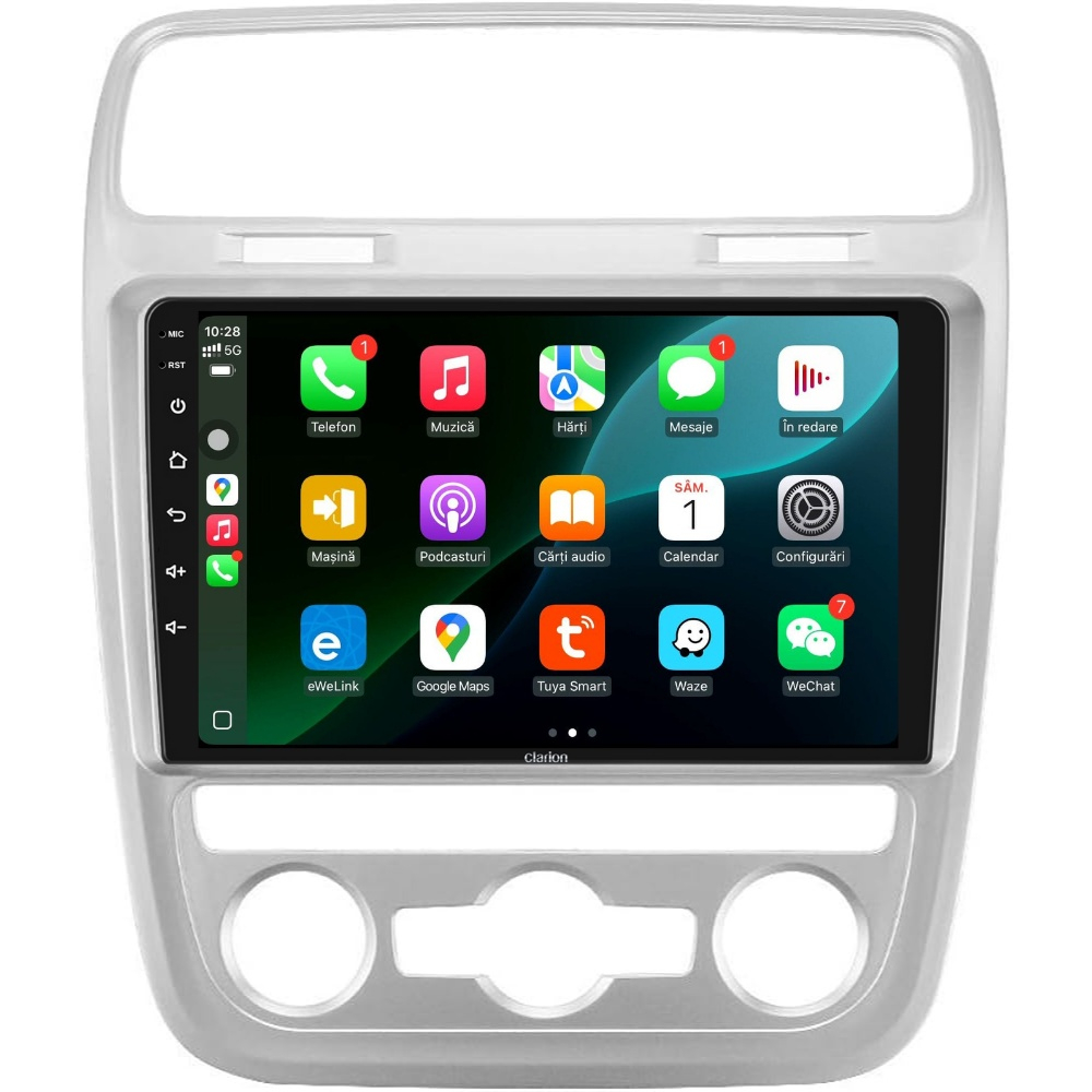 Navigație Auto Clarion cu Sistem Android Clarion , brand global renumit pentru inovațiile sale în tehnologia auto, cunoscut pentru furnizarea de soluții premium în domeniul navigației și infotainment-ului. Cu o experiență vastă de peste 85 de ani în industrie, Clarion este recunoscut pentru produsele sale de înaltă calitate si fiabilitate. Compania este un lider în dezvoltarea de echipamente auto care integrează tehnologia de ultimă oră. Unboxing Tableta – Detalii și Ce Conține Pachetul Mai jos găsești prezentarea tabletei Clarion, împreună cu toate accesoriile incluse în pachet. Instalare Plug & Play Se potrivește perfect în bord, fără a necesita modificări ale instalației electrice. Comenzile de pe volan rămân funcționale, iar sistemul se oprește automat la contact. Pachetul include rama si toate cablurile necesare montării pentru autoturismul dumneavoastra. Comenzi Volan Permite preluarea comenzilor originale de pe volan dar și adăugarea kit urilor de comenzi aftermarket în mașinile care nu au CarPlay & Android Auto Wirless Permite conectarea rapidă a telefonului pentru acces la aplicații esențiale precum navigație, muzică și apeluri, direct pe ecranul mașinii. Oferă o interfață optimizată, control vocal prin Siri sau Google Assistant și utilizare în siguranță fără a distrage atenția de la drum. Compatibilitate cu Camera Fata, Camera Trafic DVR & Camera de Marsarier Suportă cameră frontală pentru parcare, DVR pentru înregistrări video în trafic în timp real și cameră de marșarier pentru siguranță suplimentară la parcare. Procesor Quad Core Ecran IPS de Înaltă Calitate Dispune de un display IPS clar și luminos, cu rezoluție ridicată, oferind imagini vibrante și un răspuns tactil precis. Egalizator Auto & DSP Echipat cu egalizator auto și procesor de sunet DSP, permite ajustarea detaliată a sunetului pentru o experiență audio optimă în mașină. Conectivitate Wi-Fi 2.4G HotSpot Asigură o conexiune stabilă, acoperire extinsă și eficiență optimizată pentru performanță constantă. Bluetooth, Hands-Free & AUX Permite conectarea telefonului prin Bluetooth pentru redare muzicală wireless și apeluri hands-free. Suportă și conexiune AUX pentru redare audio prin cablu. Navigație GPS Compatibil cu aplicații precum Waze, Google Maps și altele, oferă ghidare precisă în timp real și actualizări de trafic. Radio FM/AM cu RDS & Radio Online Suportă recepție FM/AM cu RDS pentru semnal stabil și sunet clar, afișând informații despre stațiile radio. Permite acces la posturi de radio Online. Ecran Împărțit si Multitasking Permite vizualizarea a două aplicații în paralel pe ecran, îmbunătățind multitasking-ul pentru a reda aplicațiile telefonului direct pe ecranul sistemului de navigație. Senzori de Parcare, Control Climă & Incalzire In Scaune Senzorii de parcare, incalzirea in scaune și controlul climatizării pot fi preluate direct pe navigație, dacă mașina suportă aceste funcții. Va multumim ca ati ales produsele
