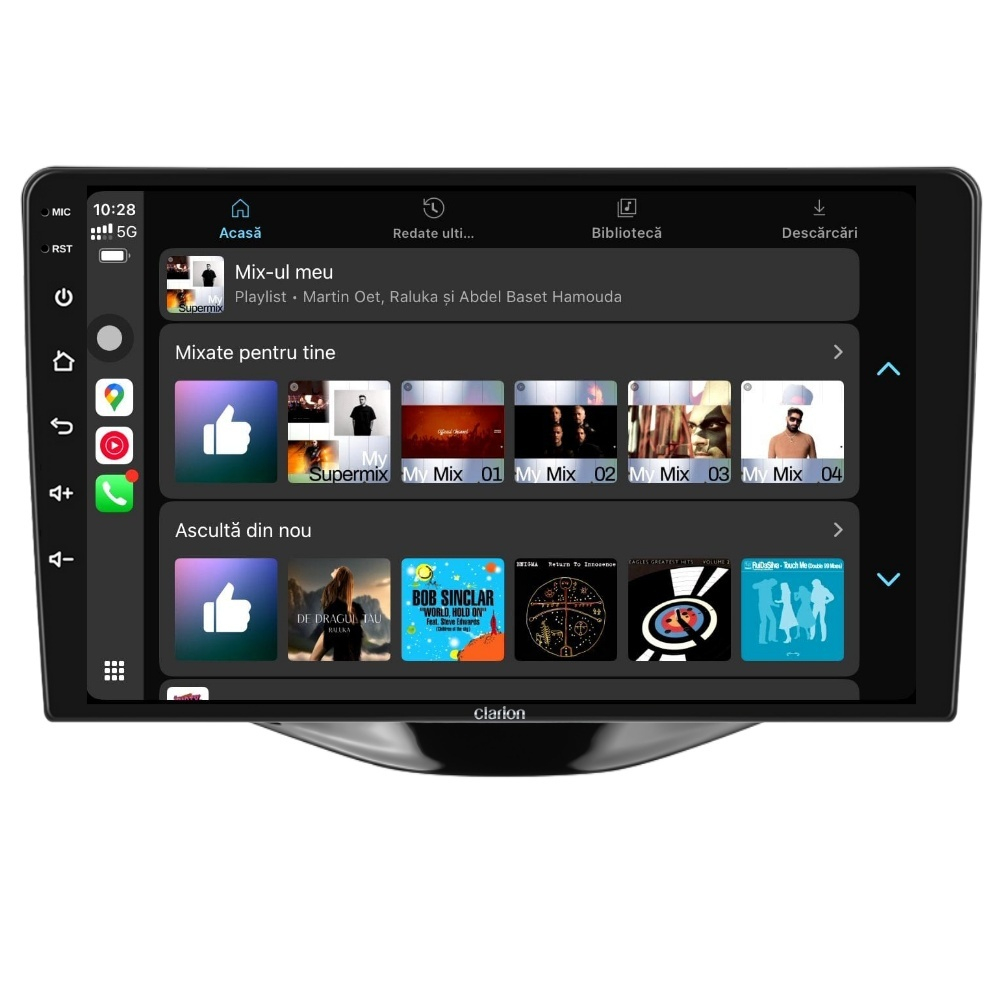 Navigație Auto Clarion cu Sistem Android Clarion , brand global renumit pentru inovațiile sale în tehnologia auto, cunoscut pentru furnizarea de soluții premium în domeniul navigației și infotainment-ului. Cu o experiență vastă de peste 85 de ani în industrie, Clarion este recunoscut pentru produsele sale de înaltă calitate si fiabilitate. Compania este un lider în dezvoltarea de echipamente auto care integrează tehnologia de ultimă oră. Unboxing Tableta – Detalii și Ce Conține Pachetul Mai jos găsești prezentarea tabletei Clarion, împreună cu toate accesoriile incluse în pachet. Instalare Plug & Play Se potrivește perfect în bord, fără a necesita modificări ale instalației electrice. Comenzile de pe volan rămân funcționale, iar sistemul se oprește automat la contact. Pachetul include rama si toate cablurile necesare montării pentru autoturismul dumneavoastra. Comenzi Volan Permite preluarea comenzilor originale de pe volan dar și adăugarea kit urilor de comenzi aftermarket în mașinile care nu au CarPlay & Android Auto Wirless Permite conectarea rapidă a telefonului pentru acces la aplicații esențiale precum navigație, muzică și apeluri, direct pe ecranul mașinii. Oferă o interfață optimizată, control vocal prin Siri sau Google Assistant și utilizare în siguranță fără a distrage atenția de la drum. Compatibilitate cu Camera Fata, Camera Trafic DVR & Camera de Marsarier Suportă cameră frontală pentru parcare, DVR pentru înregistrări video în trafic în timp real și cameră de marșarier pentru siguranță suplimentară la parcare. Procesor Puternic Octa Core Echipat cu un procesor performant, asigură o funcționare rapidă, multitasking fluid și o experiență fără întârzieri. Ecran IPS de Înaltă Calitate Dispune de un display IPS clar și luminos, cu rezoluție ridicată, oferind imagini vibrante și un răspuns tactil precis. Egalizator Auto & DSP Echipat cu egalizator auto și procesor de sunet DSP, permite ajustarea detaliată a sunetului pentru o experiență audio optimă în mașină. Conectivitate 4G LTE & Wi-Fi 2.4G HotSpot Asigură o conexiune stabilă, acoperire extinsă și eficiență optimizată pentru performanță constantă. Bluetooth, Hands-Free & AUX Permite conectarea telefonului prin Bluetooth pentru redare muzicală wireless și apeluri hands-free. Suportă și conexiune AUX pentru redare audio prin cablu. Navigație GPS Compatibil cu aplicații precum Waze, Google Maps și altele, oferă ghidare precisă în timp real și actualizări de trafic. Radio FM/AM cu RDS & Radio Online Suportă recepție FM/AM cu RDS pentru semnal stabil și sunet clar, afișând informații despre stațiile radio. Permite acces la posturi de radio Online. Ecran Împărțit si Multitasking Permite vizualizarea a două aplicații în paralel pe ecran, îmbunătățind multitasking-ul pentru a reda aplicațiile telefonului direct pe ecranul sistemului de navigație. Senzori de Parcare, Control Climă & Incalzire In Scaune Senzorii de parcare, incalzirea in scaune și controlul climatizării pot fi preluate direct pe navigație, dacă mașina suportă aceste funcții. Va multumim ca ati ales produsele